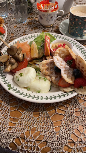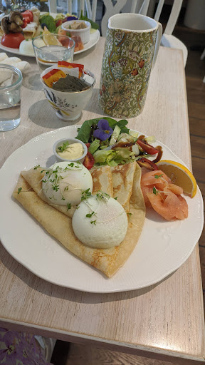 Read moreThis is a delightful little cafe. I visited with my friend and we both ate some breakfast with crêpes. It was very tasty but my crepes were a bit too thick. There's lots of choice of food and cakes and snacks. Has a really lovely feel to it, although fairly small it's very bright and feels spacious. There are lots of things to buy like wooden toys and natural remedies, crystals and natural foods which make nice gifts. There are also toys for children to play with and there's a back area with a beautiful old room that's tastefully decorated. Really...