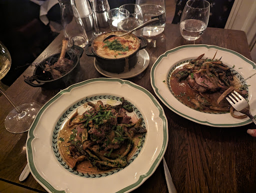 We had the beetroot entrée and the scallops from the specials board. I'll try not to go into detail because this review would become too long, but in short, beautiful dishes. On the beetroot one of the most majestic vinaigrettes I've ever had, and on the scallops, a delicious orange dressing. We were blown away. Then for main, from the specials, roast lamb with a dauphinoise on the side. Herbs garnished and with wild mushrooms throughout the plate, this was incredible, so tasty and cooked so, so well, to the highest level (we've been to many Michelin restaurants, I would choose this place over all of them). Before diving in, the chef brought the dish over to us in a deep pan, setting alight some of the contents and quickly closing the lid, which gently smoked out our table area with a glorious charred note - some unexpected theatre before we devoured that glorious dish.