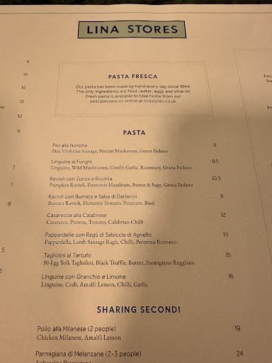 Read moreNormally have a good experience at Lina Stores KX but the first time at this branch at it was disappointing so not coming back. Food was nice, as always, although service made a mistake in my order that I only realised when paying. Service was completely chaotic. Ordered a Lina Stores Aperitive Spritz 0%, it was forgotten, had to remind the waiter again, drinks service shows up with an Aperol Spritz, I have to reject it as that's not what I ordered. Same waiter comes back quieres why rejected and we have to explain why, although had pointed out the drink in the menu in the first place and had to show him again what drink I was talking about as he was clueless. He goes away, comes back and says it's out of stock, asks if I want something else and decide to just stick with water, ask for more water and that's forgotten too. Pasta arrives, we had no cutlery had to ask for this, as itnwas taken away at starters and not replaced, reminded again about the water, 10 min later it at last arrives. Partner and I ordered the same pasta dish only difference when ordering is mine gluten free and one standard. Ate it, it was nice but slightly different flavour than usual, didn't think much of it. Finished the food, took ages to get waiters's attention to get the bill, although empty plates where sitting there clearly finished. Received the bill, Aperol Spritz was on it, refuse the bill ask for it to be removed. Get new bill, pay, then reading the bill with more attention my dish has a note gluten free and vegan, to which I realise I was served a vegan pasta dish, i.e. no cheese, hence why it tasted different than expected. By that point simply fed up didn't have the energy to bring that up to the waiter, who was only just taking away the dirty plates. Left disappointed and knowing that I was not going back to...