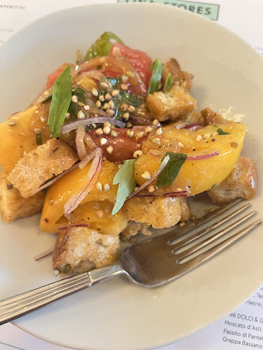 Read moreWe came to Lina Stores for a special meal and it lived up to the occasion. We started with a beer and a tasty blood orange bellini. Our seats at the counter gave us a great view of the busy kitchen, and it was nice and bright compared to the dark and noisy downstairs seating. The restaurant was bustling so we occasionally had to catch a server's eye, but a man who I presume was the owner had come up to us fairly early in our visit and talked me through the veggie options. He did a great job selling me on a salad starter featuring beautiful tomatoes, which though a tad salty was very enjoyable. My partner had the nduja and ricotta starter and he raved about it. He then had the rabbit ragu which he enjoyed, and we shared three vegetarian pastas - this was a lot of food for just two people and I probably should have limited myself to just two veggie ones! The star was definitely the truffle and ricotta pasta which was divine and indulgent. The very green gnudi were flavoursome, though again a tad salty for my palette, and I think they would get a bit tiresome if you had all four to yourself. The burrata filling of my third pasta dish seemed a bit absent, but the tomato sauce was lovely and fresh - I actually felt it didn't need the pine nut topping which was slightly overpowering. In spite of my nitpicking, I thoroughly enjoyed our meal at Lina Stores and would love to come back and try the other veggie dishes, as well as getting more of that truffle pasta! For such beautiful food it felt like great value, and I recommend booking a seat...