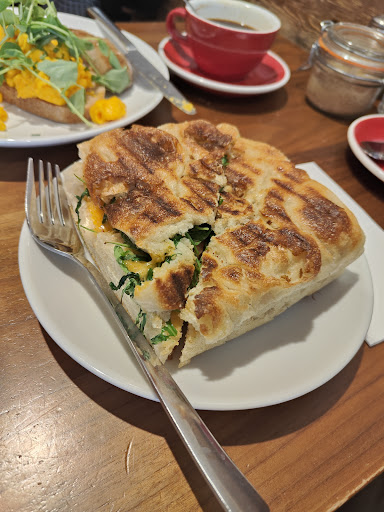 Read moreNice atmosphere on a Sunday morning. We had Scrambled Eggs on Sourdough Toast with an added Sausage, and a Cheese and Relish Focaccia Toastie â along with an Americano and a Hot Chocolate.