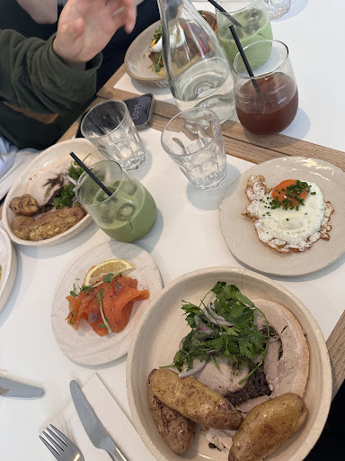 Read moreThis was another brunch after running session. This place had long queue as it is known to be popular and recommended on most popular review sites. However, you will sit quicker if you are 2 people. We were group of 3 so waited around 30-35mins, which ok, because staff came out to check on us and updated waiting times. Staff Service very good. The food was great. We ordered “Crabcake” and “Porchetta” choices from the menu. For my taste porchetta, cold dish, was normal, as I dont like cold dishes (cold meat), because the fat surrounding pork meat is cold, dont like the texture, but i finished my plate. If you are someone like me I WOULD recommend Crabcake or other options. I assure they are all good. I JUST WANT TO SAY the service was good, everyone super friendly and just felt warm. I didn’t ask for the staff lady’s name. THANK YOU. Overall, recommend. Nice brunch place...