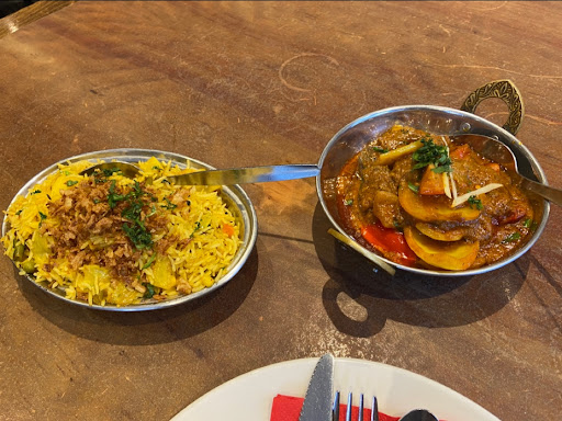 I stepped in on a Friday evening seeking a quick dine in option. There were only 3 occupied tables so I was served almost immediately. Told the waiter that I want a quick option and asked if Biryani would be ok, he said definitely. I wanted a mutton curry but he said that would take time, so he suggested to take a stir fry chicken dish and replace it with mutton meat which I agreed. Also advised that veg biryani rice (which I originally wanted) would be too big portion, so he recommended to go with Palaf Rice with veg as a side.