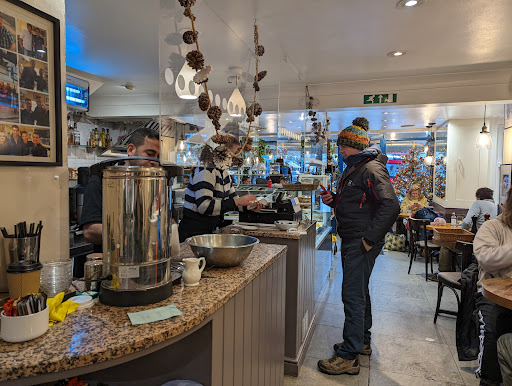 Read moreThis place is buzzing with dinners and there's no surprise when you've tasted the food and seen the size of the portions. When we arrived it was Christmas market day and the place was packed. The staff welcomed us with a generous smile and quickly made a table available. The menu was extensive but our eye was caught by the full English, on this cold winter's day at 2pm and yes it's all day, no time restriction on breakfast. However, everything looked excellent on huge plates, all freshly prepared. I went for the vegetarian full English and my husband had the hearty meaty version. (There's a Vegan option too.) Lucky I had a big eating rower with me as the 2nd and 3rd friend egg were passed across, the wilted spinach, mushrooms, grilled Halloumi and tomato, toast, all super freshly made, washed down with a large freshly squeezed orange juice and good coffee. Can not fault a thing. We'll done to the team there, they got everything just right, helpful, efficient and friendly....