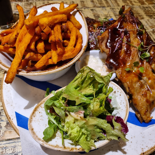 The ribs were the boil in the bag type and had that cheap bitter BBQ sauce taste to it, the dressing on the salad wasn't great either. The only good thing about my order was the Sweet Potato Fries.