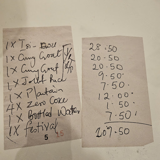 Problem came with the bill. I had to ask them to provide an itemised breakdown as the total didn’t sound right. They overcharged on all items on the menu! When questioned, the proprietor / manager informed me that all items have gone up by £1 from what is advertised in the menu. They never informed us when they gave us the menu or took our order. Could move past this as well as conscious cost of ingredients may have increased. However, it wasn’t an increase of £1. For the curry goats which already was overpriced for portion size - they overcharged by £3 per dish (£17.50 in menu vs £20.50 charged).