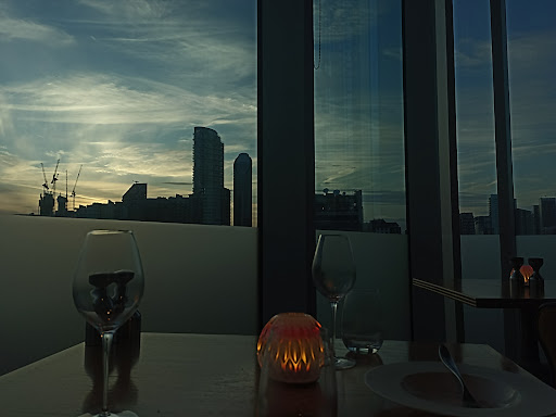 I came here with a friend as goodbye-dinner before I returned home, and it was such an enjoyable experience! The menu has a good variety of options, many of which were tempting, but we finally opted for the asparagus risotto, duck breast, a side of truffled parmesan chunky chips and an eton mess and tiramisu for dessert. We also got some popcorn on the house, which was a curious treat. The risotto was delightful and creamy, with enough asparagus and lovely dollops of cheese. The duck breast had an intense fatty flavour well complemented by the gravy, it was properly cooked and juicy. The chips, which came with high quality mayo and ketchup too, had a clear truffle taste and were nicely crunchy outside while soft inside. The tiramisu looked good, although certainly not the traditional style. The eton mess I had was also definitely a house-style, but it was still very much delicious and beautifully presented. The prices seemed quite reasonable for the quality and portions provided. The tables were clean and big; overall the restaurant had a great ambience and image, and the temperature was reasonable. The views were definitely also a huge plus, especially since we got to see the sunset develop as we enjoyed our meal. The moment the lights on the table lit up was also quite lovely. The staff was attentive and polite, without being too insistent or making themselves present too often. If anything, our only issue was with the location, which could have been better indicated. Still, I had an overall delightful time and fully...