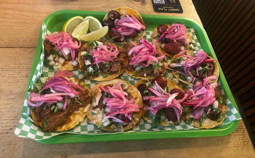Food - went on a Tuesday for taco deals. Streat tacos sold chorizo, chicken, and veggie tacos for £1 each, and birria tacos for £3. The chorizo taco had a near crunch-like structural integrity and a delicate crust for a satisfying bite, while the onions and toppings counteract the heaviness and complement the flavors of the chorizo. The birria taco was outstandingly juicy, providing an enjoyable burst of flavor for each bite I took. If they soaked the tortilla into the birria soup and fried it on the grill it would be even more phenomenal. Tacos 5/5