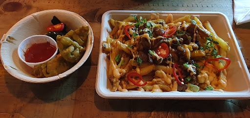 Read moreA modern street food market under the railway arch next to vauxhall Station (opposite the underground entrance) We went about 15.30 on a Thursday and it was starting to get busy and reserved signs were being put out so if going later or over a weekend definitely book. We ordered the Italian sausage pizza from 'made in puglia ' (about £10) perfect bubbled charred edges, super thin hand stretched crust with delicious fresh toppings. We also had dirty loaded duck fries (£9.50) and Vegetable Gyoza (£5) from Inamo Sukoshi. Fries were loaded with crispy fragrant duck, chilli, spring onions and siracha mayo, delicious but sadly cold (we couldn't be bothered to return then so ate them anyway) the Vegetable Gyoza on the other had were piping hot ( we think they made the chips then had to wait for the dumplings hence cold chips) dumplings were well filled, seemed home made and were served with sweet chilli sauce, £5 for 3 dumplings though seems a little expensive (4 would have been a better portion for the price) Loads of choice and something for everyone, beers are a little mainstream though so if your looking for more local or sales options you might be disappointed. Only downside is the absolutely tiny toilets. Only 2 cubicles and no space to wait if someone else is washing...