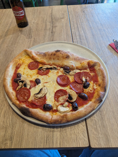 I had come straight from work and was in such a good mood I ignored the waitresses lack of benevolence and picked up the the menu that was thrown across the table. I ordered an Americana pizza and inquired as to their list of beers. "We only have Pironi in a bottle or on draft" she told me. "That's okay" I said "I'll have a pint of draft please". "We only serve it in halves she replied" I smiled at the joke and again asked for a pint. It turns out that they serve their one beer in halves only!