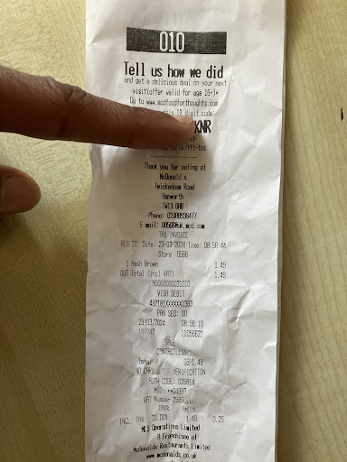 mcdonaldâs walton.. iâm disappointed. when i arrived i was bewildered by the images of rusty tin cans on the wall? very unappealing. we got delivery from my home. (0.209, 0.509, 2.412) we were appalled by the lack of speed by the mcdonaldâs delivery driver. watching him on the map was quite stressful. half way through the journey i recieve a message from the driver saying âi crashedâ. i was outraged with mcdonaldâs for giving their delivery drivers unsafe equipment. he still decided to bring the food due to my request and when it arrived it was in a state. i ordered a coke but the cup was empty with no lid and straw but i later found the substance leaking from my rucksack. how did mcdonaldâs do that?? my chips were too hot flat with a tire strip imprinted on them. they burnt my tounge and i had to remove a piece of tarmac in a fry. i have an airborne allergy to road and this couldâve killed me. i decided to take a minute outside when it started raining. mcdonaldâs timed this delivery awfully! my nuggets didnât contain any meat but just the batter. my mc flurry arrived melted and a bite mark in it! who takes a bite out a mcflurry! my happy meal wasnât so happy and had a frown! it came with a squashed up toy which traumatised by young son! i had to take a minute as iâm airborne allergic to frowns. my sauce tasted like colours and had another bite mark in it - along with saliva. it tasted great! the salad didnât come although i didnt order one. the apple pie tasted more like a pair! the pair sauce fell out leaving just the shell when it was picked up. it stunk! my cat ate it and had a seizure? iâm allergic to seizures so had to go outside in the rain. iâm allergic to rain so had to go inside where i found my cat in purrfect condition! đđ„° anyways donât recommend deliveroo! (ps walton...