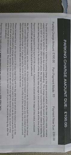There is a big scam, check MET parking services for Google and Trustpilot Reviews.