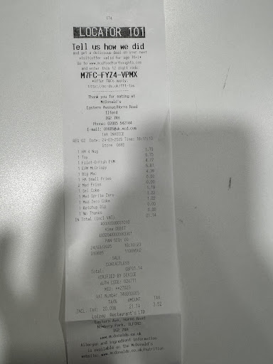 Read moreWorst Mcdonald's I have ever visited I ordered at Drive Through the other night and was not impressed. You would think with all the new systems the Mcdonald's have implemented that the least they could do is get your order right even if they are a bit slow, but no I ordered a Filet of Fish, a large fries, a large coke, a fish fingers happy meal and a Dairy Milk Mcflurry. Well I didn't get the fries, burger was cold and the fish finger happy meal was for my little sister who i was treating for dinner but when we got home she had a chicken nuggets one, I mean honestly are there illiterate staff members at this branch can they not read or double check what they are giving their customers. The chicken is not halal so my little sister had to sleep after eating a few sandwiches whilst being still hungry and upset about her happy meal. Please employ some staff members who actually know what they are doing or at least alert on the job after a half hour wait for a small order they still messed up. I prefer Seven Kings branch now you guys are a let down and should close down you can't run efficiently save the McDonalds brand fromthe embarrassment you are causing....