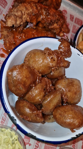 Server error - We ordered 1 garlic fries, 1 nashville, 1 chilli cheese loaded fries. We got all of them, but then for whatever reason an extra chilli cheese fries (which weren't touched) - but we were billed for two garlic fries somehow. This was removed from the bill when raised with staff.