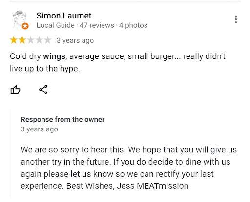 I see in other negative reviews similar issues that people have had so it's not like we're the outlier here. I do wonder how they received a "we welcome your feedback" type reply compared with our "oh you're slandering our restaurant" type reply. Helpfully for anyone reading I've collated screenshots of such reviews in the photos part of my review so that you don't have to go searching.