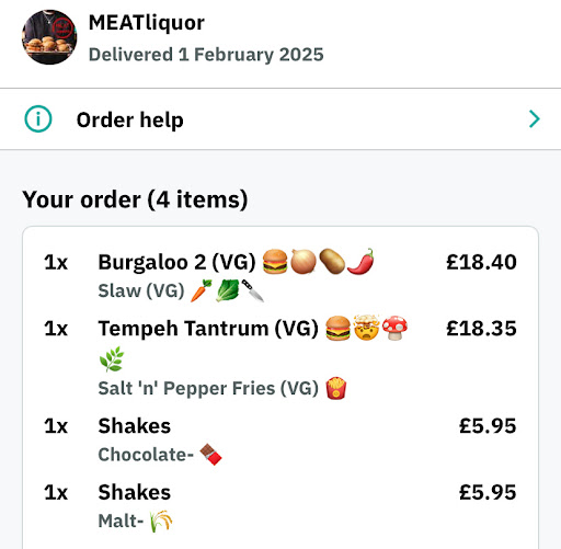 Read moreIt is so rare for me to give a less than great review - we were so disappointed with our experience of the food that was delivered from Meat Liquor, East Dulwich. Why offer vegetarian options if they are so bad?