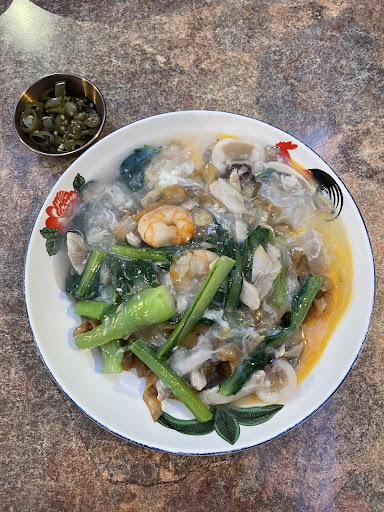 On my previous visit, I tried the rojak, an unique dish that combines a mix of vegetables and fruits with a spicy palm sugar dressing. It's a must-try for anyone looking to venture beyond the usual Malaysian dishes. This time, I opted for the "Wat Tan Hor," a dish that consists of flat rice noodles in egg gravy. The taste was remarkably reminiscent of what you'd find in Malaysia, and it was absolutely delicious. What sets this restaurant apart is its ability to serve dishes that are not typically found in other Malaysian eateries in London, and they execute it flawlessly. Even the texture and crunch of the vegetables were spot on.