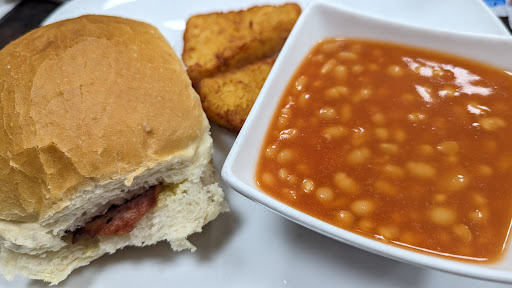 The food is the typical British breakfast food including veggie options. They also serve a variety of lunch and dinner options. I have milk allergy and eat mainly plant based which they accommodated happily. First time we visited the lady serving us gave suggestions as to what we could substitute with and checking the ingredients for me. I felt very safe and cared for!