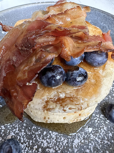 I recently had the pleasure of enjoying a scrumptious breakfast of pancakes and bacon, accompanied by the delightful sweetness of maple syrup, all in the company of a dear friend, within a truly lovely space. Let me tell you, it was an experience that nourished both our bodies and souls!