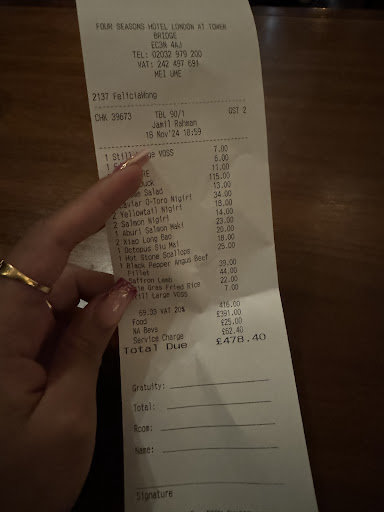In conclusion, Mei Umi is a culinary gem in the heart of London. The attention to detail, the quality of ingredients, and the creativity in each dish make it a must-visit for food enthusiasts. Whether you're celebrating a special occasion or simply looking for an extraordinary dining experience, Mei Umi delivers on every front. I can't wait to return and explore more of their menu. Highly recommended!