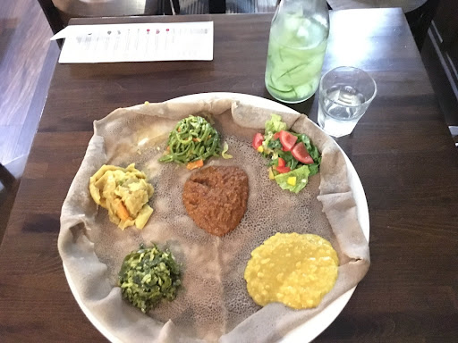 Our group ordered a sharing platter for four, along with lamb tibs and doro wat. The food was flavourful, well-prepared, and truly enjoyable. I definitely recommend having a sharing platter, as the portions are much larger, and I feel you get more variety. A couple in our group shared a platter for two, and it seemed much smaller in comparison. We had a few Ethiopians in our group, and they were really happy with the food, which is always a great sign of authenticity!