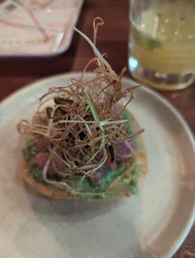 After that, I have to say that four of the best things I've eaten so far this year - or maybe this lifetime - are the tuna tostada, the wings, and the tacos. The tuna tostada basically wowed me by being made with such high-quality ingredients, especially the sushi-grade tuna and the corn tostada shell. The wings were complex; sweet, smoky, and not as hot as you might guess considering that gochugang paste was used. There was still just enough heat that the complexity of flavor blew me away. I can conjure up that taste in my buds right now and my mouth is watering. The wings themselves have apparently won awards, and it's easy to taste why; beyond the flavor complexity, they're just perfectly cooked. The execution on these dishes was superior, and that's before considering the creative mingling of flavors.