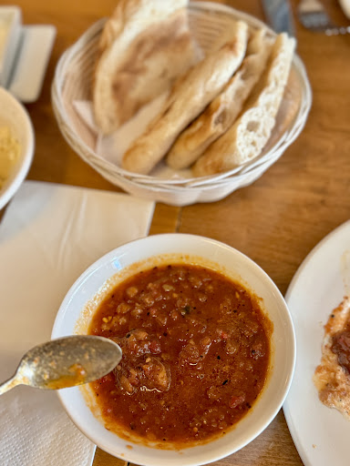 Having walked past this restaurant nearly every day for the past two years I decided to give it a go. Unfortunately I was underwhelmed by our experience here, although my partner really enjoyed it. Positives were the waiting staff were very pleasant, attentive and friendly, the restaurant has a really nice ambience, the chicken beyti main was cooked nicely for me and my partner loved her stuffed artichoke main. Negatives were how quickly the experience lasted, two starters, two mains in one hour felt so rushed. The mains came out five minutes after our starters were taken, the place was not busy but it would've been nice to relax a little more. Then the prices. The hummus starter doesn't come with bread, this was a first for me and cost £6.50. The halloumi and avocado starter cost £8.45 and was literally two slices of grilled halloumi and half an avo with a bit of oil. It was fine, but very basic for the price. The artichoke main veg accompaniment looked like it was straight out of a tin. Sweetcorn, peas and carrots did not look appetising at all. My pilaf rice was wet and contained sweetcorn and peas and was unseasoned. For the price I would expect a bit more. Two starters, two mains and a carafe of wine with service was £70 in one hour. A bit more care and patience with the food and timings would have made the...