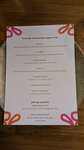 food: out of the 7 courses, the carpacio dish was a weird concoction. The lasagne was saved by the truffle oil, even if it wasn't cold, it wasn't the most exciting dish flavour-wise. If this was a main dish on the a la carte menu, I would be extremely disappointed. The rest were really good! Loved the arancina. The raspberry tart with pistachio base was divine.