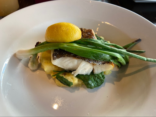 The hake was cooked nicely, but I wonât know how the dish shouldâve tasted because it had no sauce. I didnât like the slightly cooked whole stalk of spring onion draped across the fishâtoo acrid. As well, the mashed potatoes were stodgy and had developed a skin, as if they had been sitting out for a while.