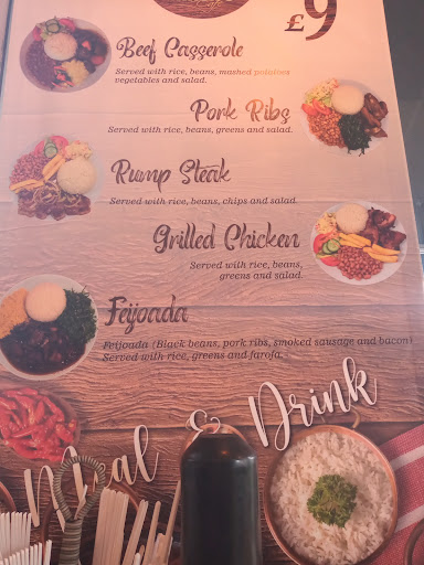 Meal deals feijoada, chicken, steak, pork, or beef casserole with drink for £9.
