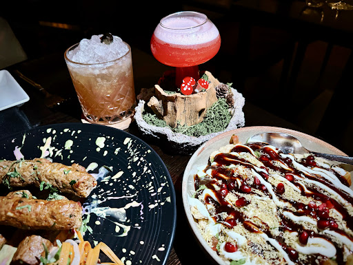 The venue is vibrant and elegant just like its food. It has a stylish decor with dark wood furniture, dim lighting and colourful accents. It also has a bar area where you can enjoy some cocktails or mocktails.
