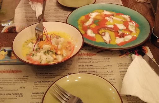 Ā Ā Ā Read moreThe first thing to say is that the food is very nice, though not inexpensive. However we were not impressed when it came to ordering the wine. We had two glasses of house white at the end of happy hour as our aperitif, but when we tried to order a bottle of the same to accompany the food, there were apparently no more in stock. This was the Chilean house wine in a South American restaurant. They tried to encourage us towards much more expensive bottles, however we found an alternative affordable option, which we ordered. When receiving the bill, we found we had been served a much more expensive bottle of a similar wine. It all seems too much of a coincidence. To be fair, they then changed the price on the bill to the wine we had actually ordered but not been served. All I would say is pay attention. It just felt a bit as if we were being taken for...