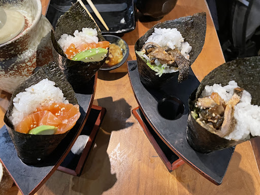The grilled yellow tail cheek was good and so were the soft shell crab and salmon skin hand rolls. Rest of the sushi was average although the hint of scallion / ginger garnish on the mackerel was an authentic touch. The faux unagi is not my cup of tea - why they don’t serve real unagi and tuna is good for the earth but bad for business.
