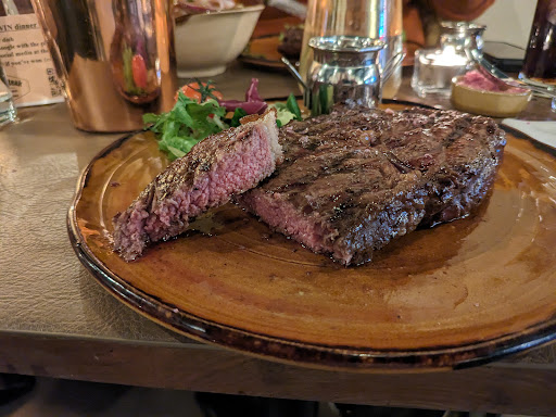 There was something off with the taste. It was not nice, it had a livery/metallic taste. I have eaten a lot of meat in my time from all over the world to know this was not how a ribeye should taste. As a general rule of thumb, I personally don't like to make a scene in a restaurant about the food, so I just ate it hoping that the taste would disappear. This did not happen. I asked the person who i was dining with if anything was wrong with theirs so I can only assume I just got unlucky with the bad bit of meat. Shame really, but it does happen sometimes.