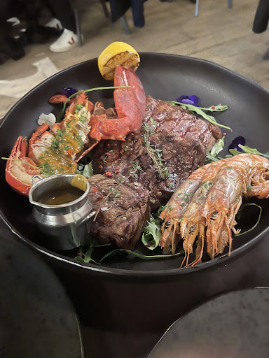 Read moreOverhyped and overpriced. Wouldn't return again. I came here last night for a date night because it was rated 4.8 on Google. Unfortunately, this was more of a theatrical place that focused more on Instagrammable content than its food. We ordered the Leave It Up To Me, which came with three prawns, half a lobster, and three medium-rare steaks. Although the experience was nice and different from choosing your own knife and dry ice shows, the food was below par. We started with the prawns, which were warm and okay. Then we went for the lobster, which was overcooked, rubbery, and cold. The meat in the claw was cooked well but didn't have any taste. By the time we reached the steaks, they were cold. The ribeye was tough even though it was medium rare. The rest of the steaks were alright, but having all the food on one plate with the juice from the seafood and meat mixed together and eating it cold isn't something worth £130. We ordered the truffle fries and bechamel spinach, which were something standard you would get at a cheaper place. Truffle oil was used instead of actual truffles, considering the price we were paying. Unfortunately, when the waiter came to see that we had finished, he thought that we loved it. I had to say something, as it was just all hyped up and wasn't what you would want to pay that much for. The only comment that he could give us was to ask them to heat the food up if it was cold. This should have been explained to us with the bunch of explanations that were given regarding the story and theatrics instead. The wine was,...