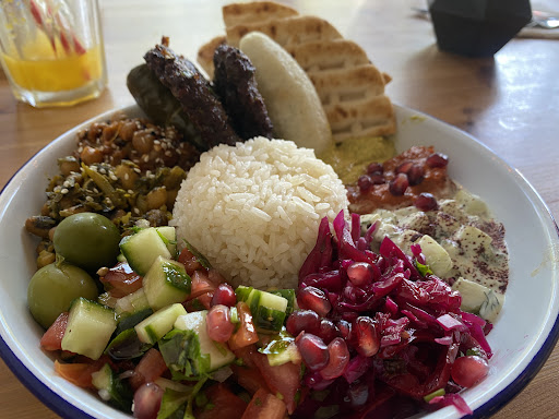 Read moreVery quiet, soft lit slate grey cafe restaurant. To the food, it was extremely well presented, looked colourful and appetising. I ordered the soup and mezze. Surprised to be served my soup (lentil) at same time the main, and it was unfortunately not properly heated through, so asked for it to be reheated. Mezze was full of flavour which was great, but didn't taste or appear freshly made. It was all quite luke warm. Surprised as this was 12noon, so not late in the lunch service. Mezze was of course interrupted again by the return of soup. Very hard to catch the attention of the staff. Only one other couple on the place, so staff weren't naturally floating around, frustrating when needing attention. Prices are good, and I just wish quality of service and freshness matched the flavours and presentation. I really want to rate this higher and hope my next visit...