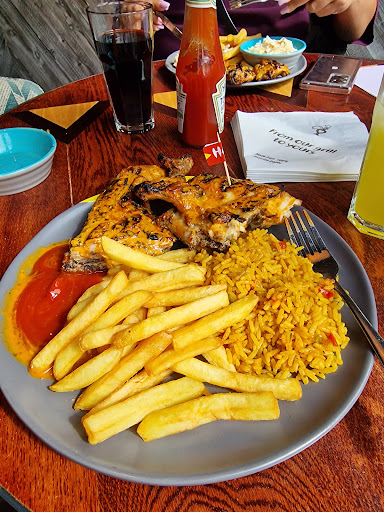 So I had half a chicken, hot, well done, spicy rice and chips with a bottomless drink. Food came out just as asked for, not a long wait, I picked up our cutlery and additional sauces whilst waiting. Wild herb, Garlic, hot sauce and ketchup, mix those together on your plate for the ultimate dipping sauce!