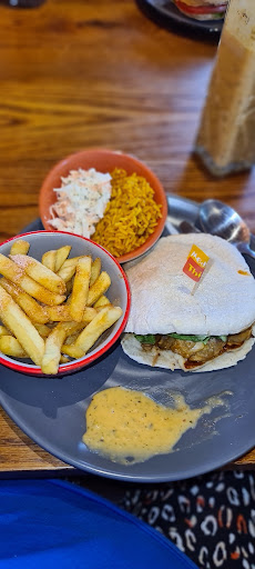 Nando's is a bit of a household name... thought I'd give it a go after a long hiatus. Ordered delivery though, but I've put 4 for atmosphere as it's well know to be the type of cooker cutter restaurant style which is traditionally Nandos. Quick delivery!! Great selection of food both veg and chicken. I had the hot grilled burger with chips and corn side and got a slaw (yum and fresh tasting with nuts). Chips cooked pretty and seasoned well, always a tough item to courier... The grilled chicken was a bit dry, also due to the bun being dry. It's worth noting you pay about a £1 more on most things when ordering online (and the deliveroo user service fee which I have no problem paying for as a user, may w the restaurant is charged a high % to be on Deliveroo). I think it's better as a dine in food... And I'll get the pitta next time not chicken in a burger bun 😊