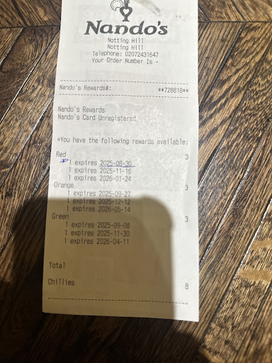 Read moreYesterday (20/01/24) myself, a friend and our children had lunch in the Notting Hill branch of Nando’s. My first annoyance was being told I could only order online which wasn’t working out for me. I only wanted 2 glasses of wine which meant 10 mins of faffing with a glitchy website so decided best I go talk to a human. First guy I spoke to didn’t seem to know what wine was so went to fetch another guy who then said it could only be done online so I handed over my phone, but then he decided to use the till in front of him. I’m not sure what’s worse human inadequacy or computer says no. Both a bit annoying. Anyway, time got away with us and we needed to leave but I hadn’t finished my wine. I asked for a take away cup but was told they didn’t have any so went next door to another take away place and got a paper cup to decant. When I got back to Nando’s the manager had confiscated my glass of wine and said I had to drink it there because it wasn’t allowed to leave the premises. I decanted my wine I had paid for and said I appreciate its policy not to allow it but it would be irresponsible for me to down a glass of wine and as I had paid for it, I was going to take it. He implied he would call the police because I was breaking the law. Regardless of the technicalities- WHAT IS WRONG WITH PEOPLE!?? Pick your battles, you can advise people of your POLICY but please do your company a favour and get a GRIP. If I had time I would have hung about to see what the police had said to this manager. My wine, my cup and my responsibility. It was one of the most ridiculous interactions I’ve ever had. So, if anyone intends on taking away the drink they’ve paid for, bring your own take away...