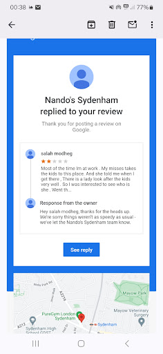 Read moreThis is the worst Nando’s ever in the history of Nando’s! They are rude and have no customer service training. My daughter and her friend went to Nando’s after school, my daughter waited 1hr 45 minutes for chicken wings and chips. Despite my daughter asking about her order numerous times they forgot to ring my daughters order through and their excuse was that they got busy and therefore her order was missed. When I arrived to pick up my daughter my poor she was starving - they finally brought out her order once I complained. The guy that forgot to ring through my daughters order began to argue saying it was my daughter fault because she went to the cash machine across the road, at that point his colleague stepped in and told him to leave and attempted to apologise and explain what really happened - which was totally their fault. He offered her some garlic bread because of the wait, but by this time my daughter wanted to go home and declined the offer. We will not be going...