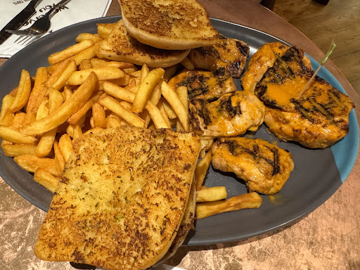 Read moreOn arrival we were told it was going to be a 20min wait. We were a little undecided about whether to wait or go and stepped outside for a minute to discuss. We decided that we would wait but on returning there was no one around to take our booking. We waited a few minutes before going downstairs to the restaurant to see if someone else could help us. We stood at the bottom of the stairs where one attendant was chatting to somebody. At no point did he acknowledge our presence & it was only when he was called by the other attendant behind the food counter that he showed us to a seat. So no 20 min wait in a restaurant that was less than half full! We ordered the platter containing chicken thighs and butterfly breast. Our sides were piri chips and garlic bread. There was no spicy rice available. The food arrived and the way it was presented unceremoniously chucked onto a plate looked very unappetising. It would have been better to serve the chips individually. It was the brown colour from the chicken, the chips & bread that all blended into one & looked unappealing. The chicken tasted fine. The garlic bread was nice but the piri chips were average. I think however, the overall experience & look of the food was disappointing and it is unlikely that we will return to Nando’s...