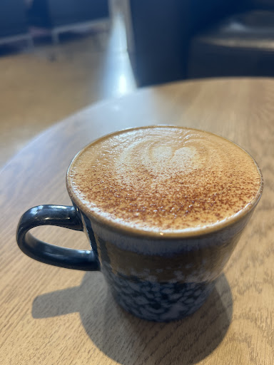 The service was happy, welcoming and friendly. As we were greeted with a smile. Table and chairs as well as comfy lounge chairs too. Peaceful and away from the crowds in coffee...