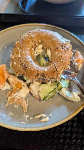 Let’s start with the salmon bagel. It was a limp, sad excuse for a meal. The bread was chewy like rubber, the salmon tasted like it had been defrosted in a microwave two days ago, and the whole thing reeked of neglect. There was no freshness, no flavor, and absolutely no care in preparation. Calling it a “bagel” is borderline fraud.