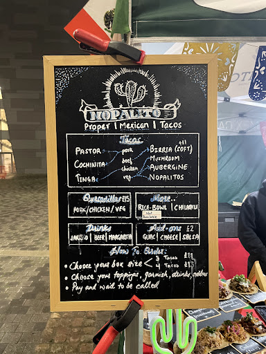 It basically serves tacos (3 in a box, can add an additional 1 for 2 pounds) but offers a wide variety of choices in their menu. Vegetarian and halal dietary options are available.