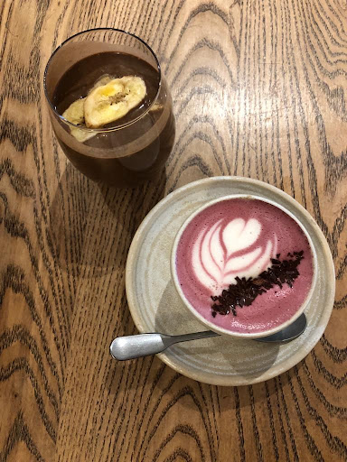 My girlfriend ordered an "energy boost latte" for £4, which she said was OK, but not worth the price. I had a sip and personally didn't think it was anything special either. It looks pretty and all (see the pink latte in photo), but not worth the price - when you can get better elsewhere for cheaper too.