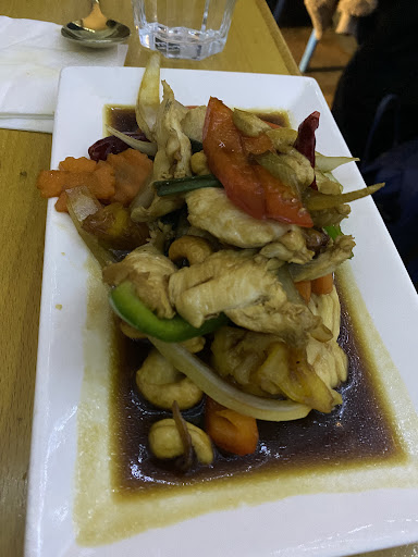 Some of these reviews are for English greasy spoon food which perhaps skew the rating. I had a pad thai, papaya salad and quarter duck with pancakes. The papaya salad was fine. No complaints, pretty hard to mess that up. Spring onions and cucumber sticks and plum sauce was nice. Sadly my quarter duck consisted of one eighth fat. The pad Thai was terrible. Reviewers on here who are impressed with pad Thai here seriously need to check out more restaurants.