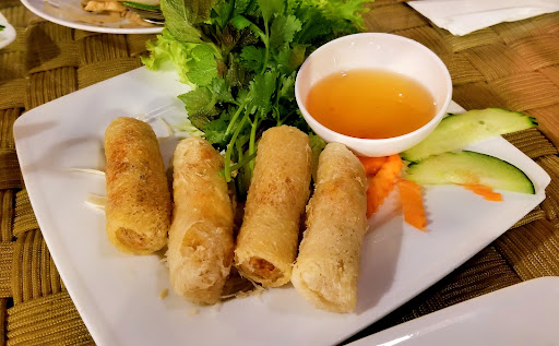 I opened the meal with Spring rolls, as any Vietnamese meal should be started. Each roll was crunchy, spilling forth it's meaty contents into your mouth, well complemented either by hoisin sauce or Sriracha chili.