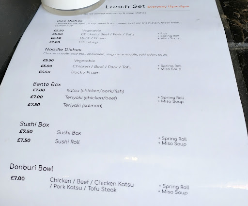 Read moreSet in a really small shed near one exit of New Malden station. Spent about £20 for a very, very filling meal for two people. We found the sushi quite good - the meat was fresh and the rice was cooked perfectly. We also got a Korean vegetable pancake, which was quite tasty (but the sushi was better). The aesthetics are a drawback obviously because it is a cramped cubbyhole right on the main road, but you are taking away the food ultimately, packaged quite neatly. If you have a craving and want a quick fix, this place...