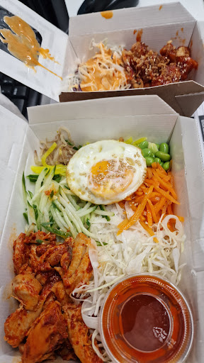 Read moreHaving grown up in Asia my standards and expectations of Asian food in other countries is higher because I know what good Asian food tastes like, the flavours, the aroma, the spice, etc. My girlfriend and I were on the bus just cruising around exploring and we saw this place, so we got off and went straight there because the sign said Korean street food. Now, to get all the good things out of the way, the staff were nice, the place was cool, hipster-ish, and clean. Air-conditioning is a nice touch too. Now onto the bad. Yaz and I love babimbap (Korean hot stone mixed rice dish), we used to eat it multiple times a week when we were living in Singapore (recently moved here to London), and we would get one for 8 Singapore dollars, about £4. Now I expected it to cost more because we're in England, and replicating good Asian flavours is harder across the waters... Well... I assume... But that's where my issues begin. Not only were the babimbap we ordered lackluster, but they were actually cold when given to us. It was also very apparent that they were precooked as the beef looked it, the egg was obviously precooked, and again, it was all cold. Not stone cold, I'll admit there was a hint of warmth, but it was overall cold. These cost £10.50 each.... Which in Singapore is about 21 dollars, give or take. For a single dish, that's rediculous. But this is London, so annoying as it is, its how it is. But because of the quality of the dish, I will not be getting it again, if I ever did return to this place. I actually went out of my way to Google this place just to find a way to review it quickly for you to read. The next issue I had was the drink we ordered. We ordered something called plum punch, which sounded nice on the menu. Plum, honey and soda water, sounds nice, but it was sickly sweet and very difficult to drink as the bottom solution was so thick I couldn't suck it through the straw. Okay, so back to some goods, the Kimchi pancake, was good, albeit small, the taste was good. Could've been a bit spicier though. Also the fried dumplings were good too, we had the prawn ones. Overall I wasn't impressed and probably won't go back. Although, there was this spicy chicken wing dish that did look nice, but we didn't order, and it seemed to be the main thing people were getting around us. I may go back to try that dish, but I don't think that'll be...