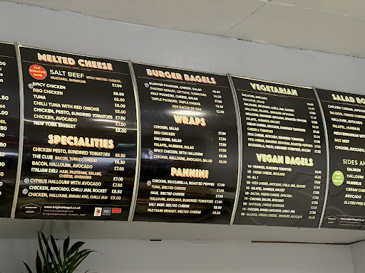 Read moreMainly a takeaway along busy City fringe Goswell Road. Seats for say 10 or so and a couple of tables outside (when not in lockdown). As the label on the tin says, it does mainly bagels, and very good they are too - the salt beef is the best I have tasted. Many fillings, the usual, plus savoury, sweet or spicy. They also do wraps; the kofte wrap is very good. Good coffee too, the proprietor is friendly...